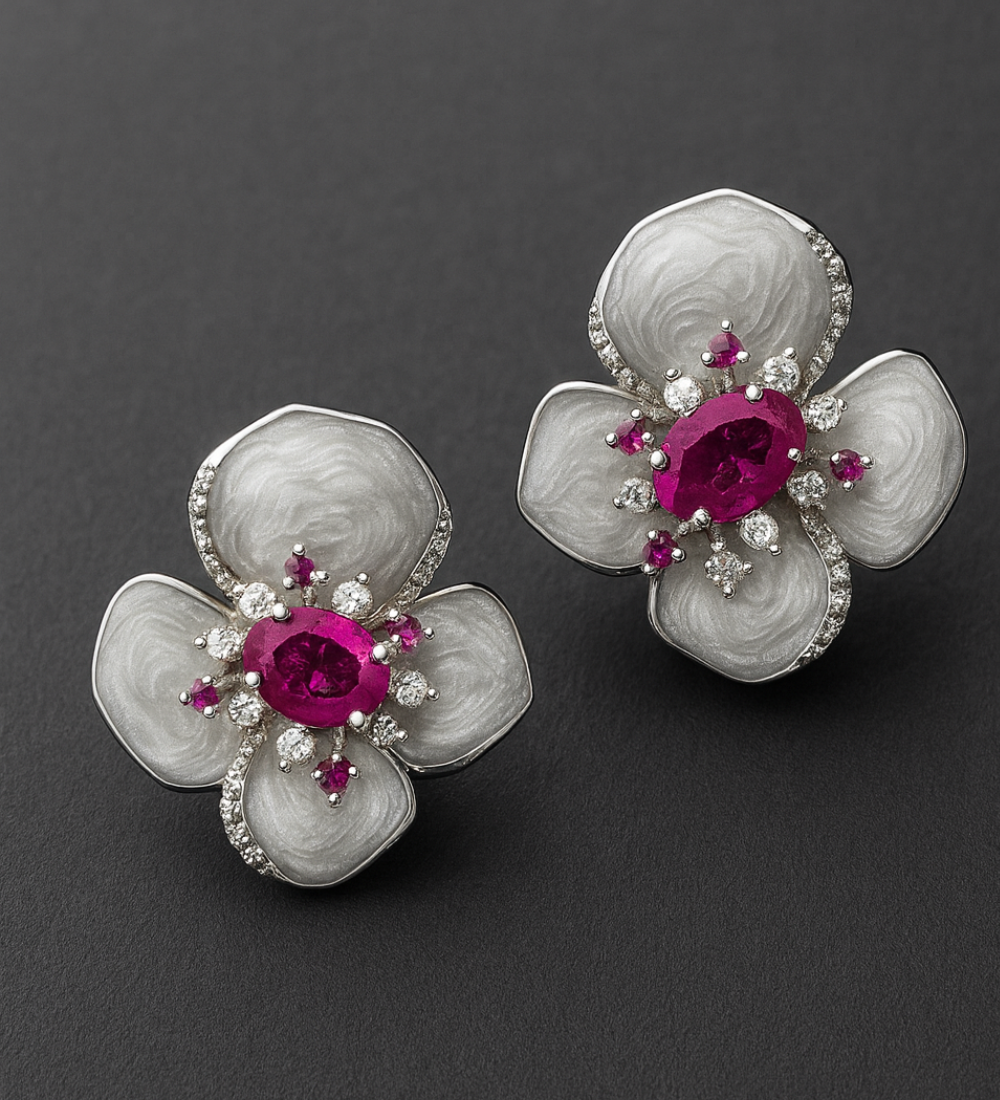 CZ Studs with Ruby